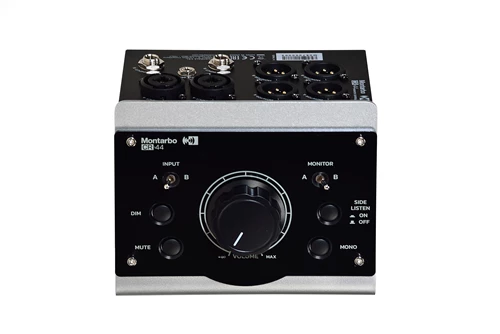 El control de volumen pasivo garantiza una atenuación transparente de la señal de audio. Los controles integrados permiten la selección de entrada y salida, el volumen, el silenciamiento, la atenuación de 20 dB, la función MONO y, por último, pero no menos importante, la función Side Listen, que permite escuchar selectivamente la mezcla estéreo en sus zonas espaciales más laterales.