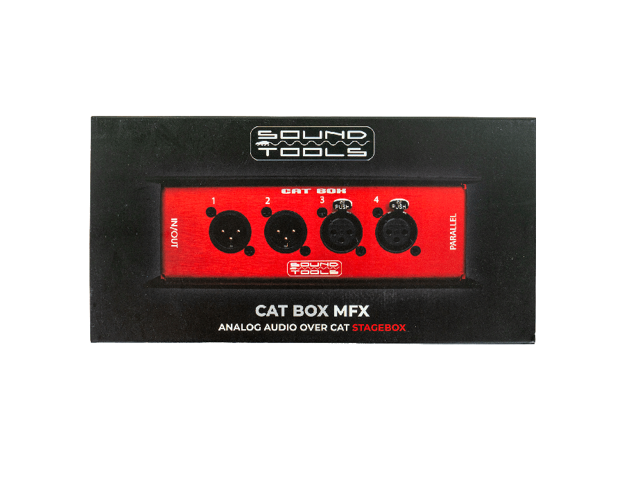 La SoundTools CAT Box no es una caja de derivación de escenario común y corriente. La hemos diseñado para ser una de las unidades de audio sobre Cat más versátiles del mercado. Al combinarla con nuestros cables SuperCAT o SuperCAT Sound, una conexión con CAT Boxes costará aproximadamente el 15% de lo que pagaría por una conexión de audio promedio con 4 cables XLR. Ahora puede conectar cuatro canales aislados de audio nítido o intercomunicador a través de un solo cable Cat5e blindado o superior, e incluso aumentar la distancia de sus líneas. Hemos conectado con éxito señal analógica balanceada a más de 182 metros con nuestro cable SuperCAT en nuestro taller.
